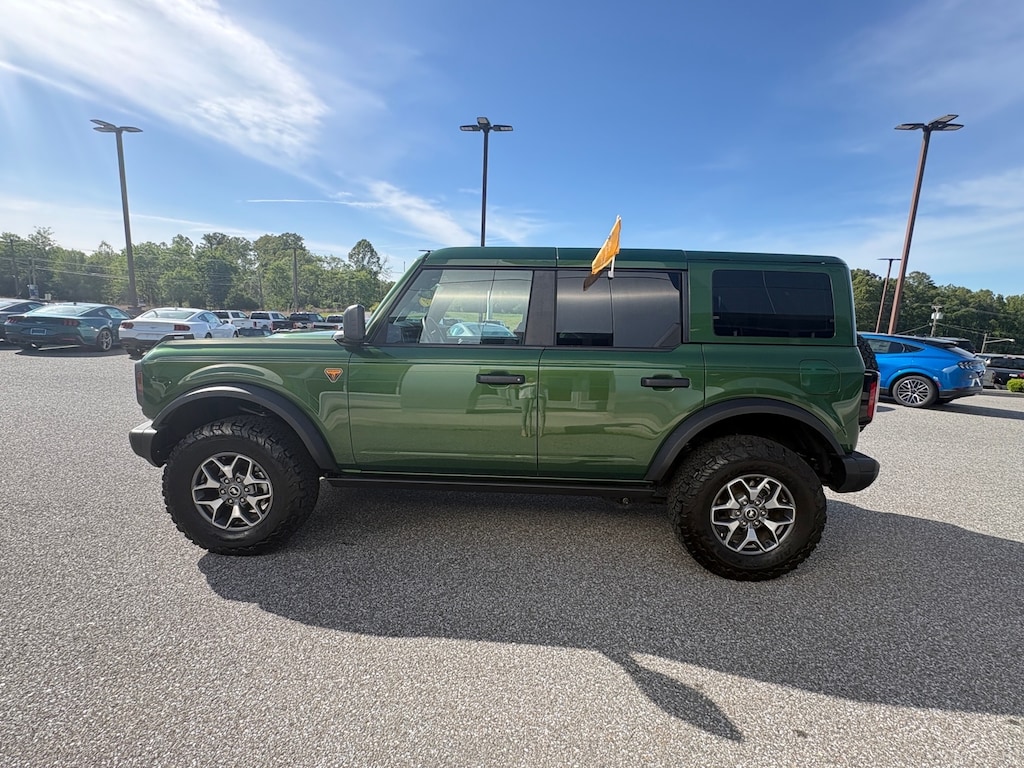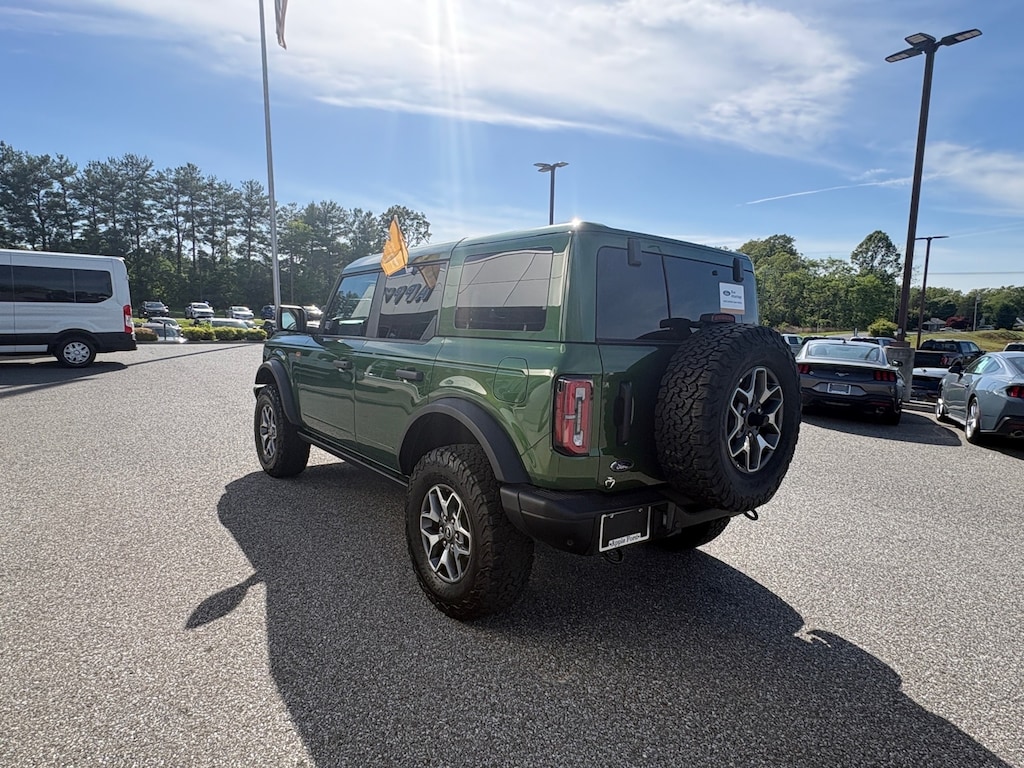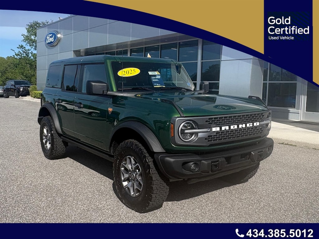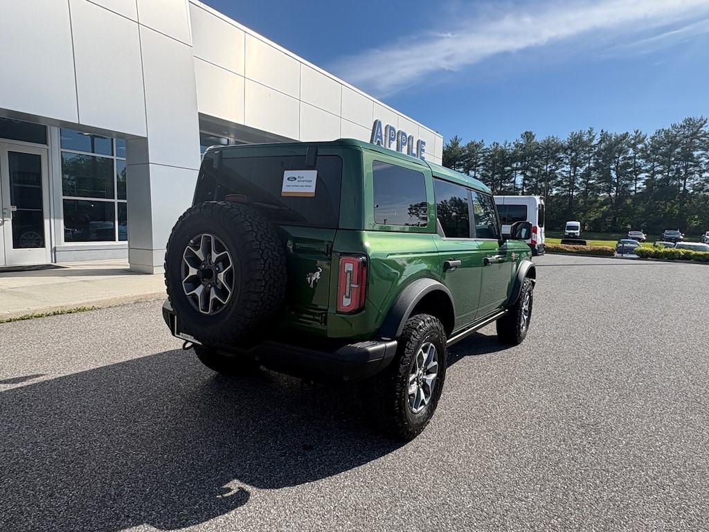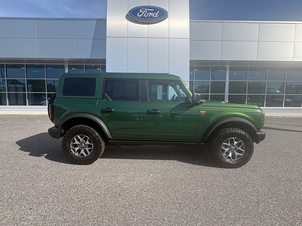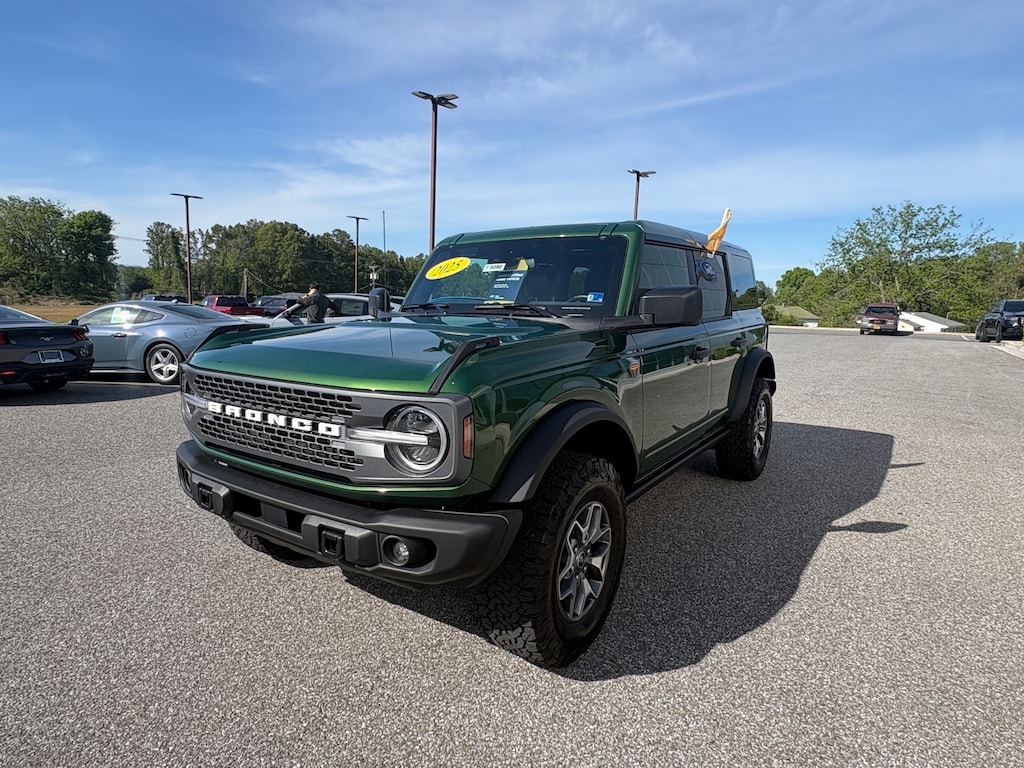 Certified. Eruption Green Metallic 2025 Ford Bronco Badlands 4WD 10-Speed Automatic 2.7L EcoBoost V6 2-Door Intelligent Access w/Lock/Unlock, Ambient Footwell Lighting, BACK UP CAMERA, Connected Navigation, Dr & Pass Illuminated Sliding Visor Vanity Mirrors, Dual Smart Charging USB Ports, Dual-Zone Electronic Automatic Temperature Control, Equipment Group 332A Mid Package, FORD CERTIFIED 100,000 MILE WARRANTY!, Front Row Heated Seats, HEATED SEATS, LEATHER INTERIOR, Power Outlet - Back Side of Center Floor Console, Rear Parking Sensors.